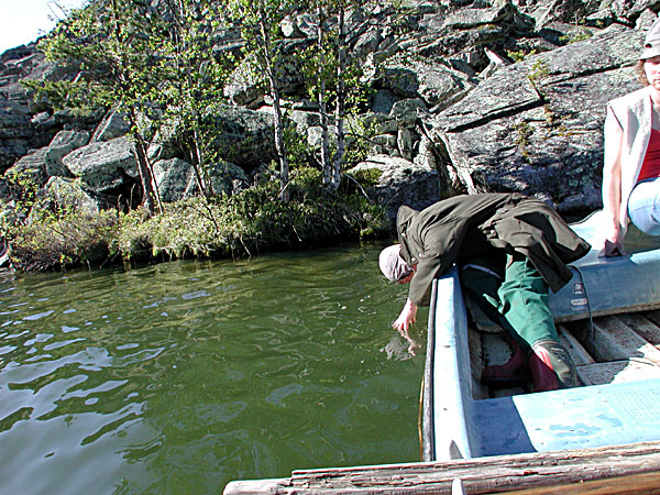 Mens skuta "Lasse" klapper til kai fikk Teufel �ye p� en gytende aure som spreller i